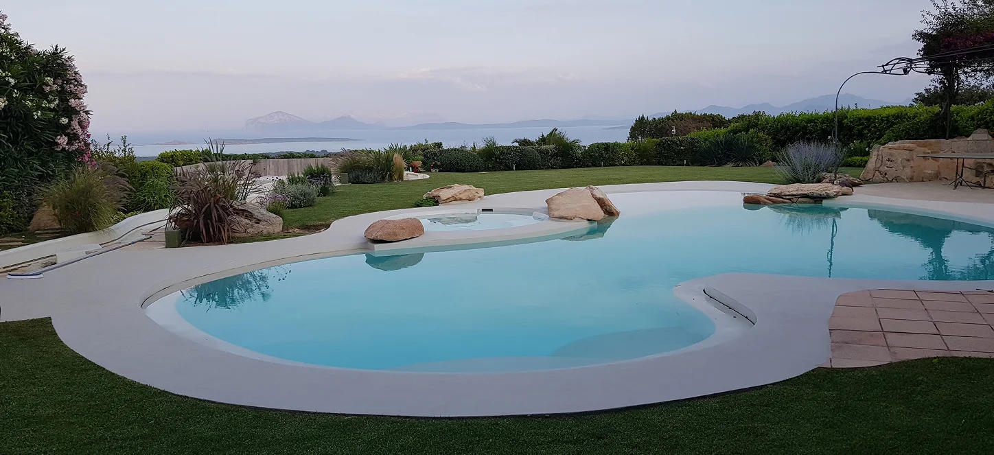 Realizzazione di multiple piscine private per complesso di ville high-end. Ogni piscina con design personalizzato, perfettamente integrata nel paesaggio mediterraneo della Sardegna.